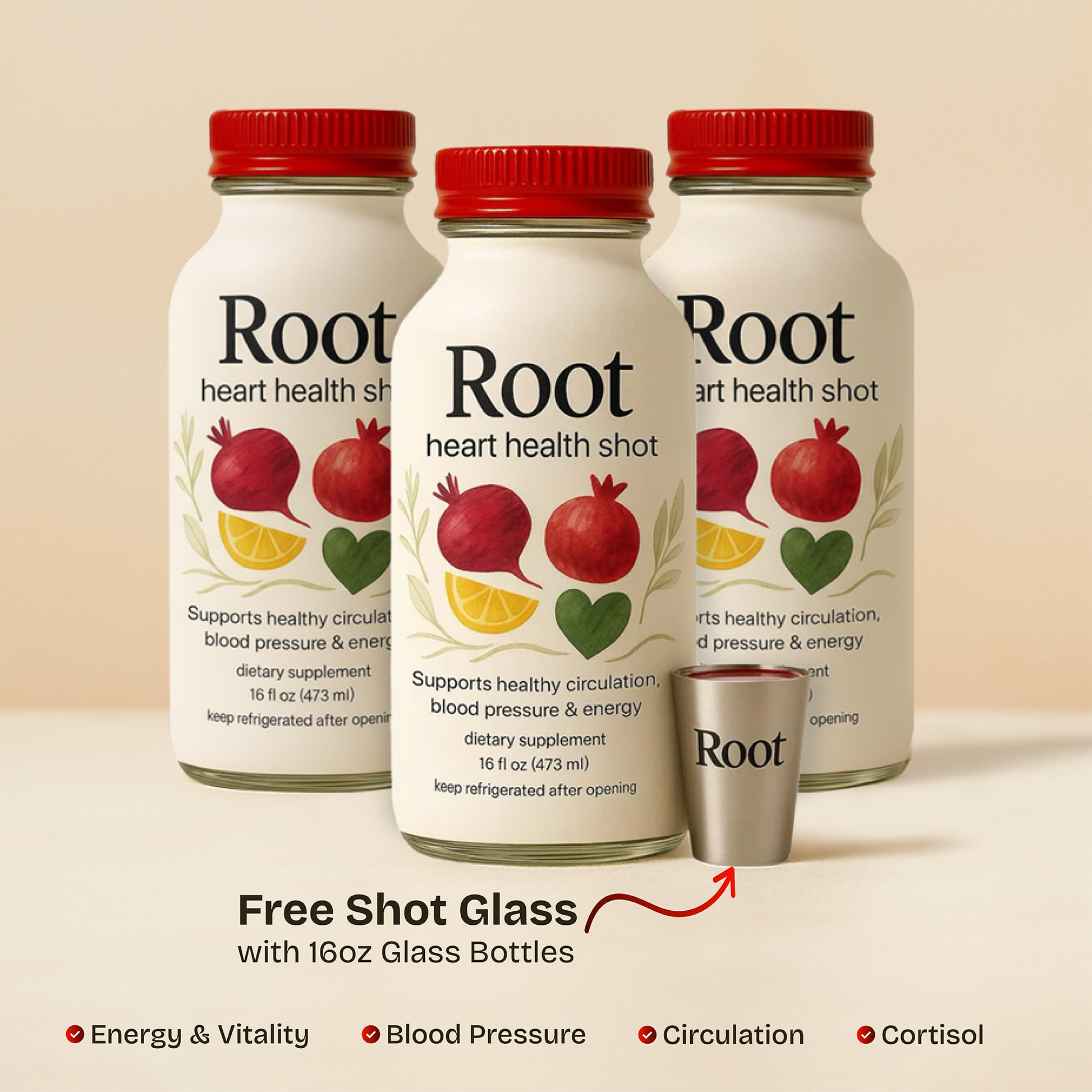 Root is taken in a daily 1.5oz shot either in the morning or before workouts. Use your free shot glass to measure your daily serving.